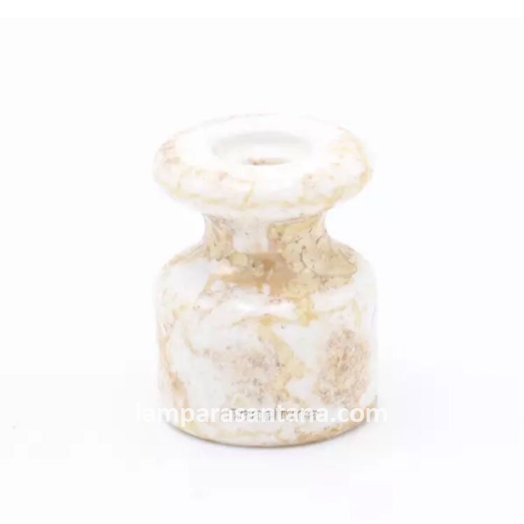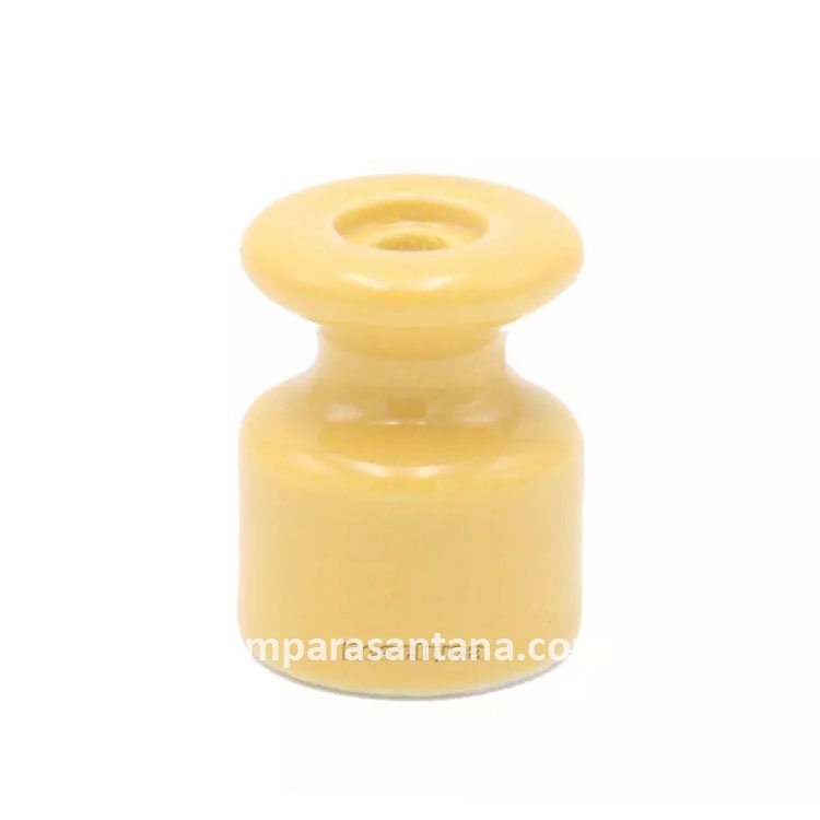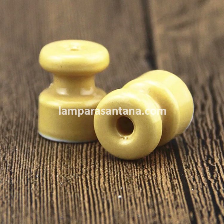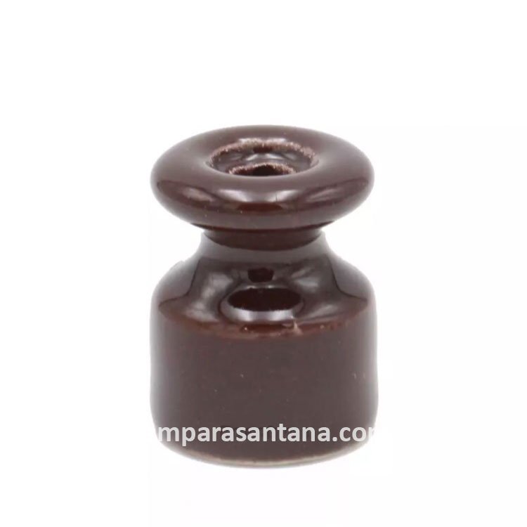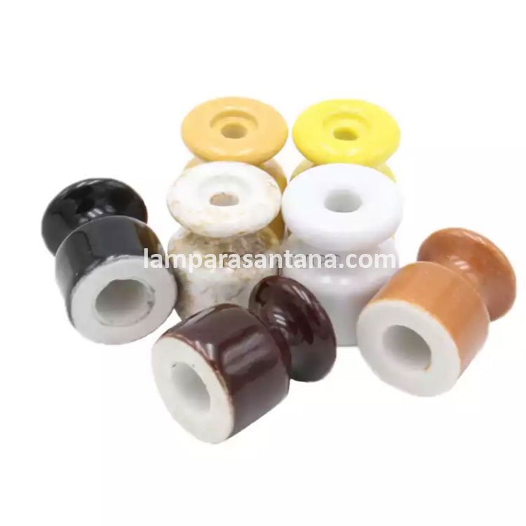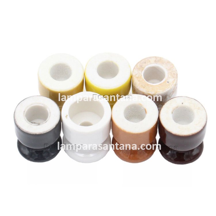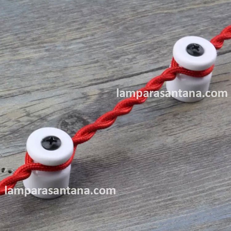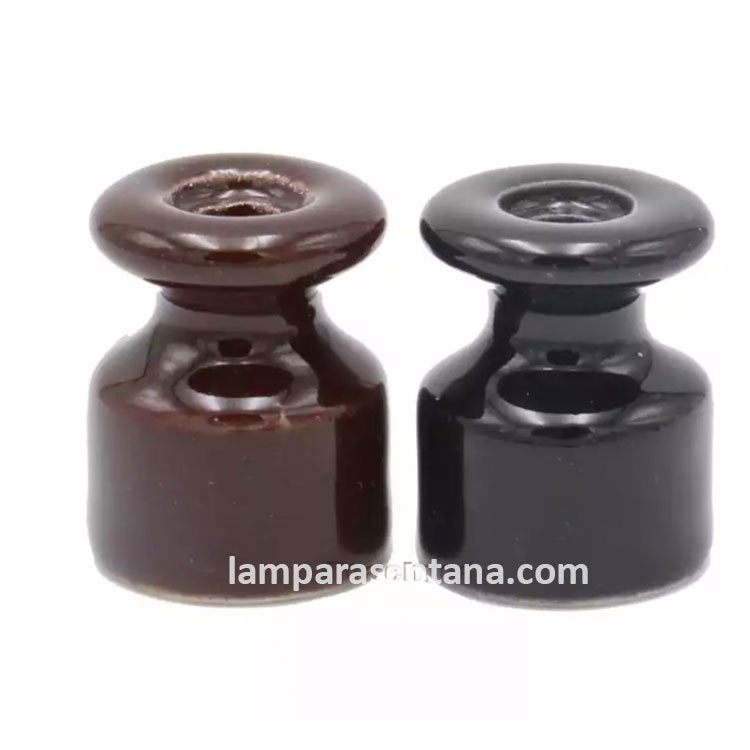 Aislador de porcelana Para conducción del cable trenzado Sujeción para cable de tela trenzado Disponible en varios colores Medidas: altura 2cm ancho 1,5cm orificio interior: 0,5cm para colores marron y blanco Medidas: altura 2,4cm ancho 1,9c orificio interior. 0,5cm para colores negro, craquelado y crudo