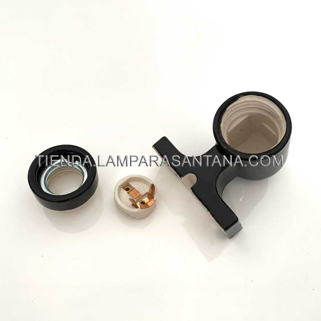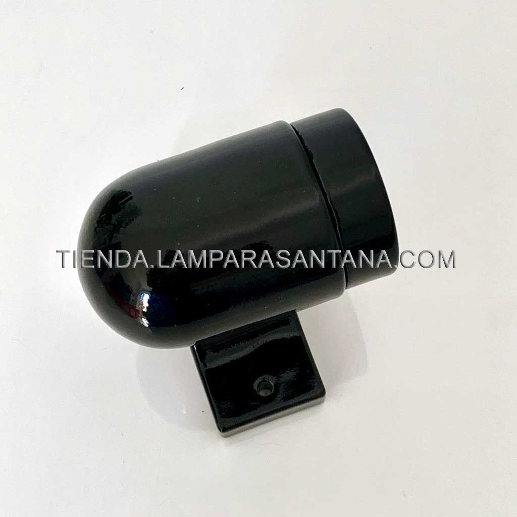 Portalámparas aplique de pared Retro porcelana negro. Está pensado para su uso en interior, por ejemplo en la sala de estar o en la cocina. La porcelana dura del portalámparas tiene una densidad particularmente alta y un esmalte extremadamente duro. Características del producto Casquillo: E27 Material: Porcelana. Color: Negro / Blanco Voltaje: 230V Amperaje: 4A, máximo 40W Medidas: 72mm ancho x 79mm largo x 76 alto. Índice de protección: IP20 Bombilla no incluida
