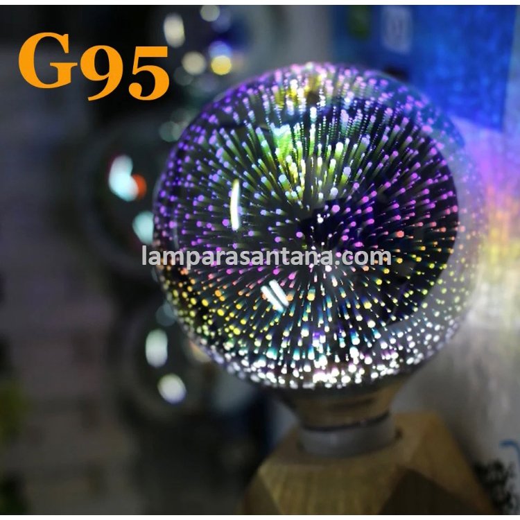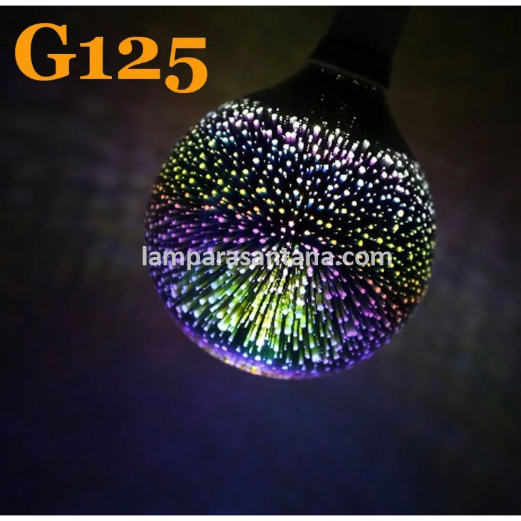 Bombilla led 3D con efecto de fuegos artificiales. Se fabrica en dos tamaños ø125 y ø95. 4W  220-240V  E27 320 grados  15000 horas Medidas: ø125 (125mm x 170mm) y ø95 (95mm x 125mm) Estas bombillas 3D harán las delicias de cualquier fiesta que organices.