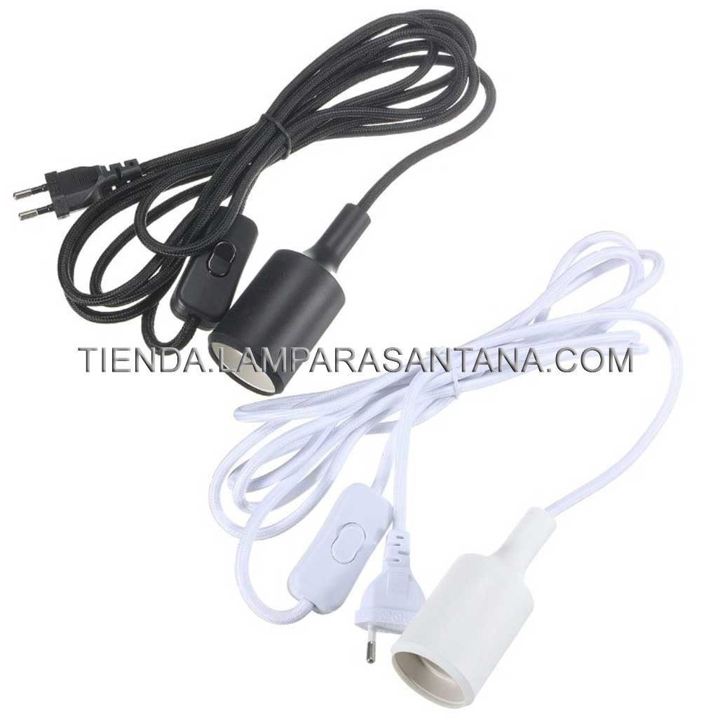 Cable Lámpara con portalámparas de silicona. Disponible en dos colores: blanco y negro.