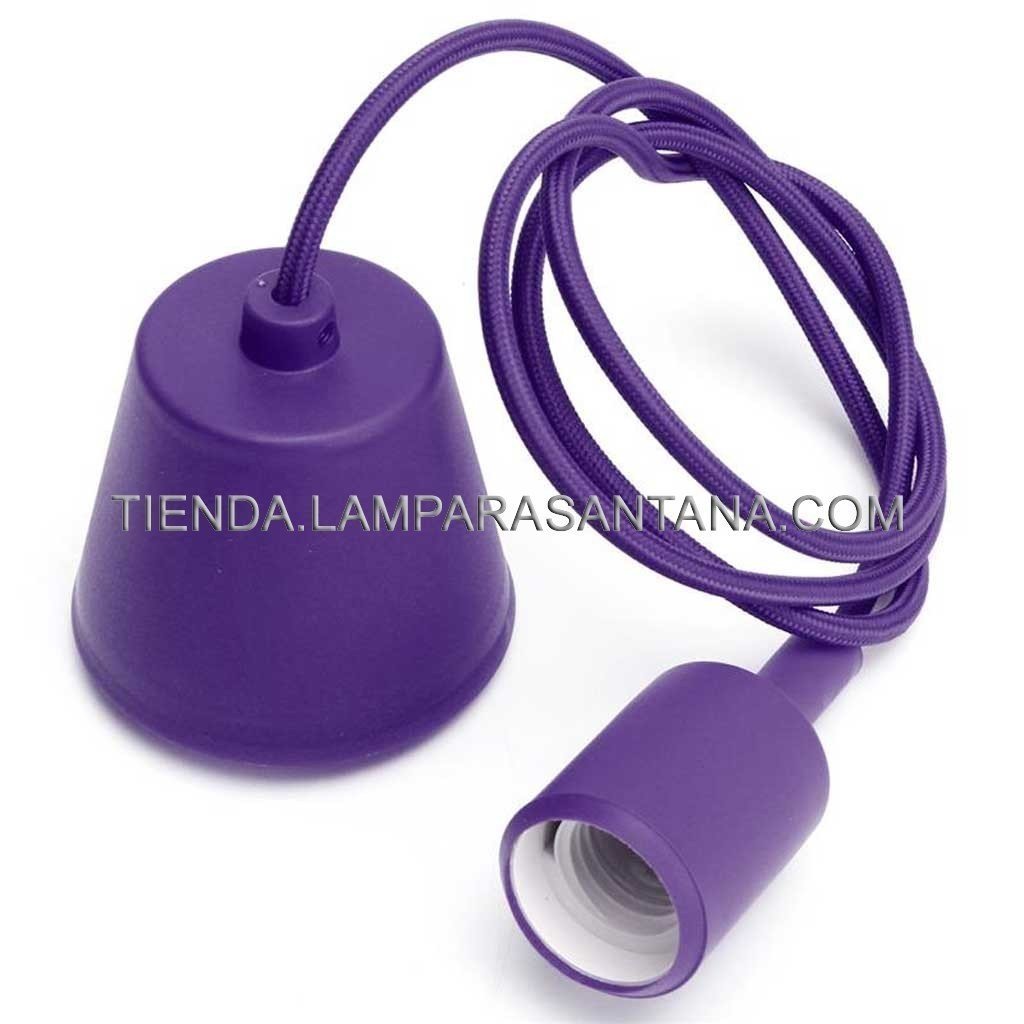 Cordón textil morado lámpara Cable textil morado, capuchon, casquillo a juego Material: silicona, polietileno Cable eléctrico textil 1 metro