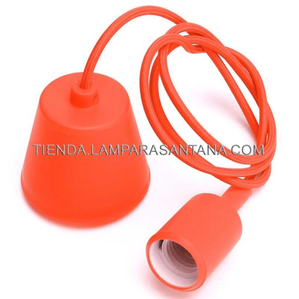Cordón textil naranja lámpara Cable textil, capuchon, casquillo a juego Material: silicona, polietileno Cable eléctrico textil 1 metro