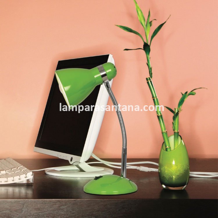 Flexo en acero varios colores E14 Bombilla bajo consumo incluida Soporte flexible en niquel Peana y base a juego. Medidas: 34x14cm