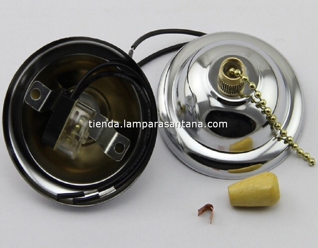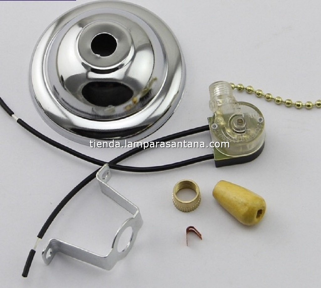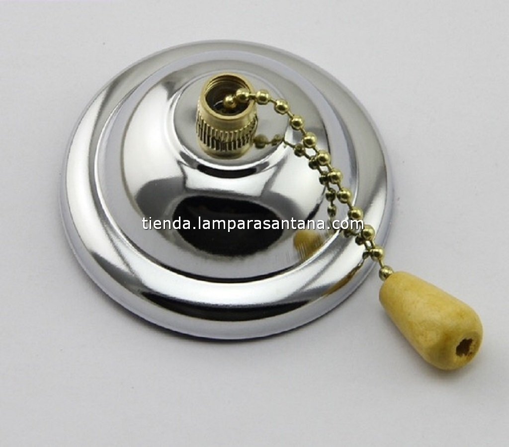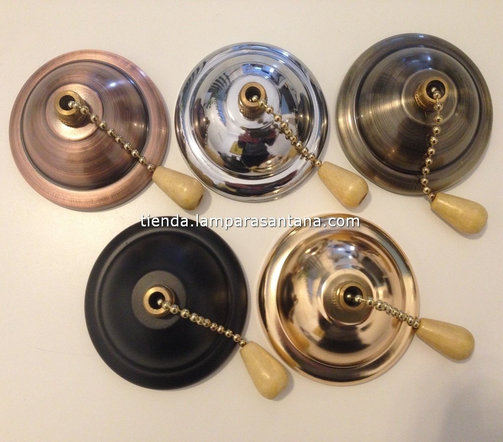 Florón de pared con interruptor de cadena para lámparas e instalaciones eléctricas. Cadena interruptor on/off. Disponible en varios colores.