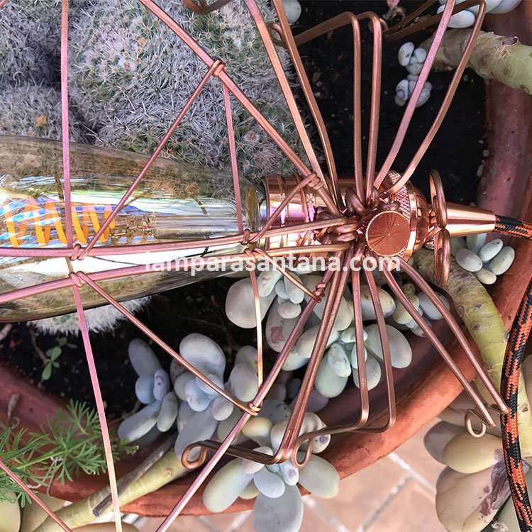 Lampara Abeja una de las lámparas estrella de la colección insectos fabricada de forma artesanal en cobre o en latón. Características: Fabricada en alambre de cobre o latón portalámpara a juego con el alambre e-27 metálico con perilla metálica on/off 4A 230V Cable textil 1,5 mt 2×0,75 a con interruptor intermedio y clavija a juego Medidas aproximada 25×25 Bombilla no incluida Esta colección se fabrica de forma 100% artesanal sin soldaduras como única herramienta se utiliza alicates al ser un producto artesanal las medidas pueden variar ya que no hay dos insectos exactamente iguales. Son ideales para cualquier tipo de…