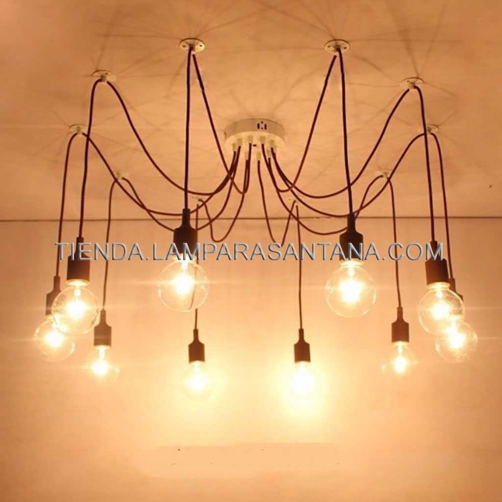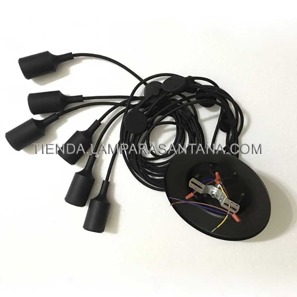 Lámpara Araña Vintage Negro. Soportemetálicoen blanco y portalámparas de silicona negro. Para combinar con bombillas Edison, incandescentes o LED.