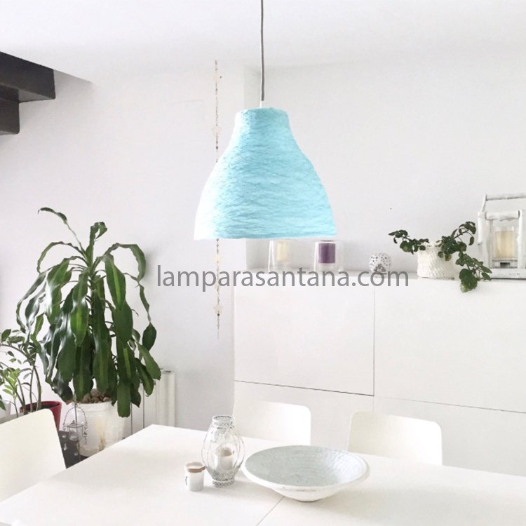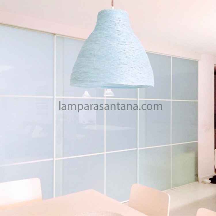 Lámpara colgante de diseño nórdico en forma de campana minimalista fabricada de forma artesanal perfecta para cualquier espacio. Características: fabricadas en hilo de algodón 100% natural cable textil 2×0,75 2 metros soporte metálico blanco portalámpara interior e27 4A 250V Máximo 60w Para otros colores de cable y campana consultar. Bombilla no incluida. Estas lámparas artesanales son ideales para colgar encima de mesas de comedor en las islas de las cocinas en tu oficina o negocio. Crea un ambiente moderno con estilo nórdico. La textura del algodón deja entrever La Luz ya que no son opacas. Fabricadas de forma artesanal.