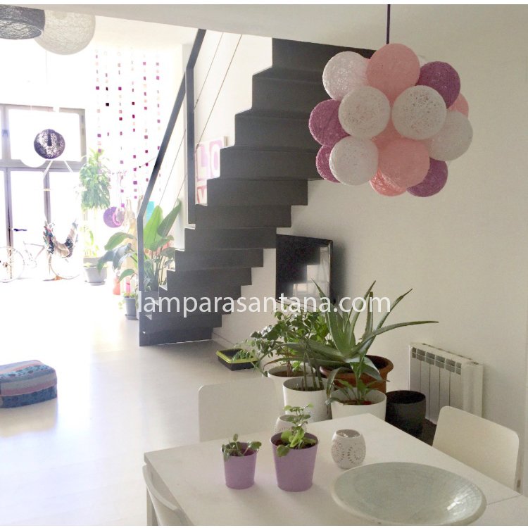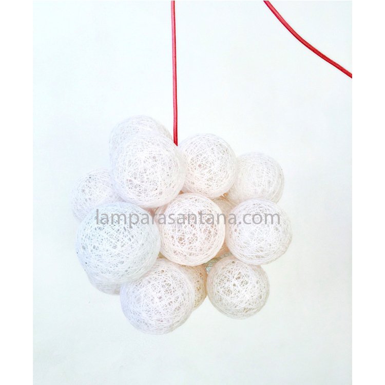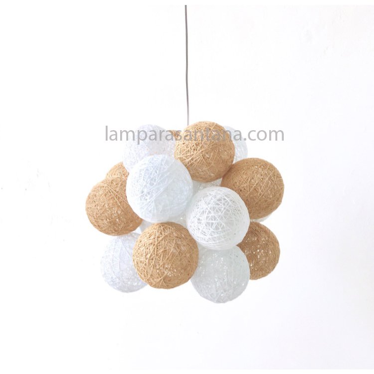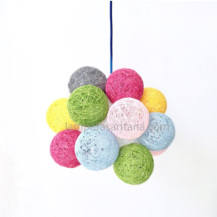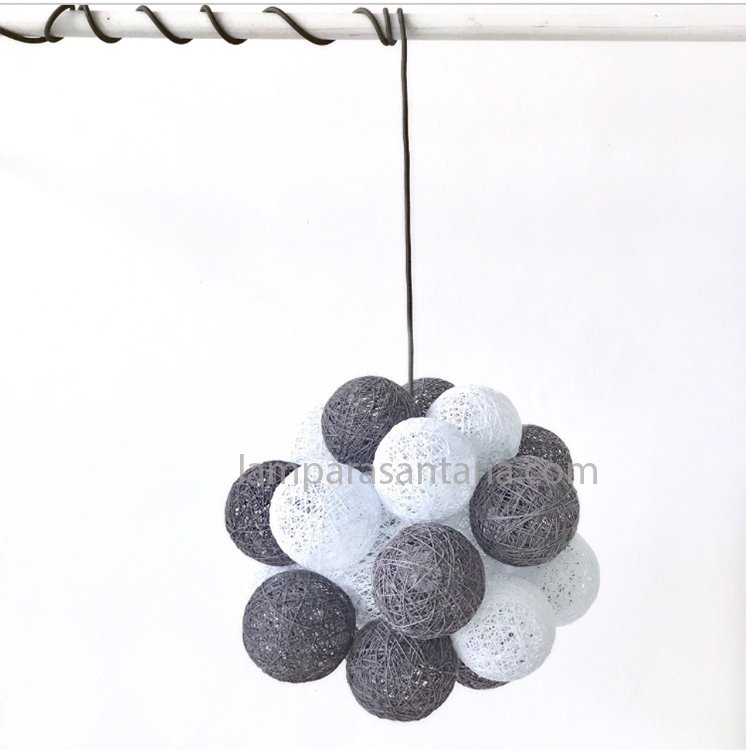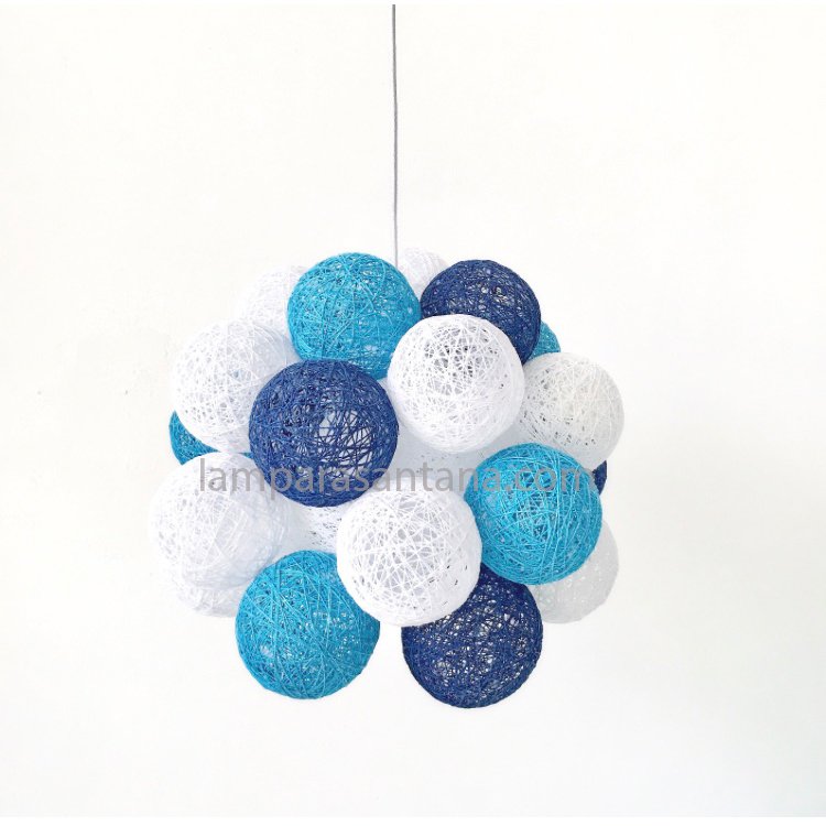 Lámpara colgante de diseño nórdico minimalista fabricada de forma artesanal perfecta para cualquier espacio se fabrica en varios tamaños y colores. Características: Fabricadas en hilo de algodón 100% natural cable textil 2×0,75 2 metros soporte metálico blanco Portalámpara interior e27 4A 250V Máximo 60w Estas lámparas artesanales son ideales para colgar encima de mesas de comedor, en las islas de las cocinas en tu oficina o negocio.  Crea un ambiente moderno con estilo nórdico.  La textura del algodón deja entrever La Luz ya que no son opacas.  Fabricadas de forma artesanal. Para otros colores y medidas consultar.