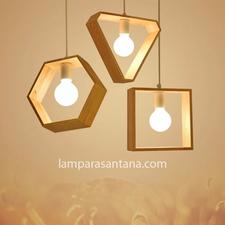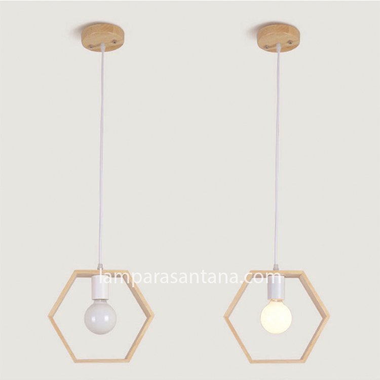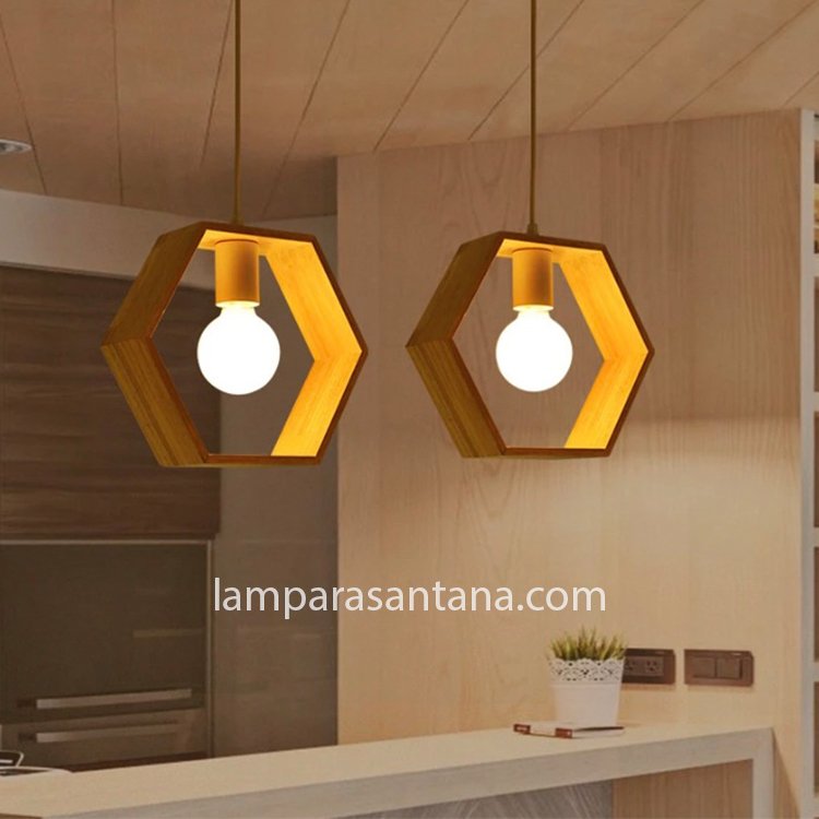 Lámpara colgante madera hexágone