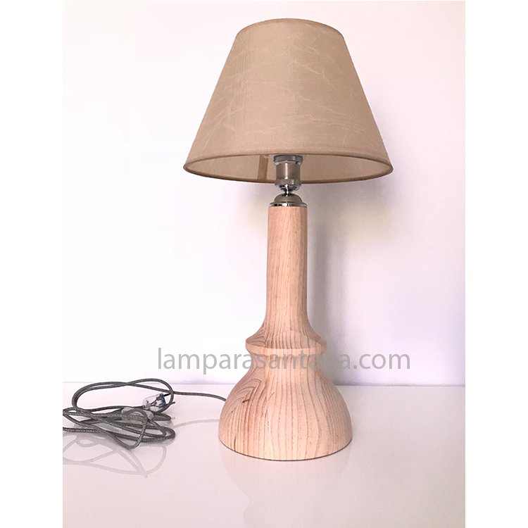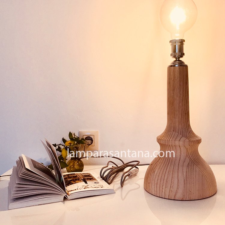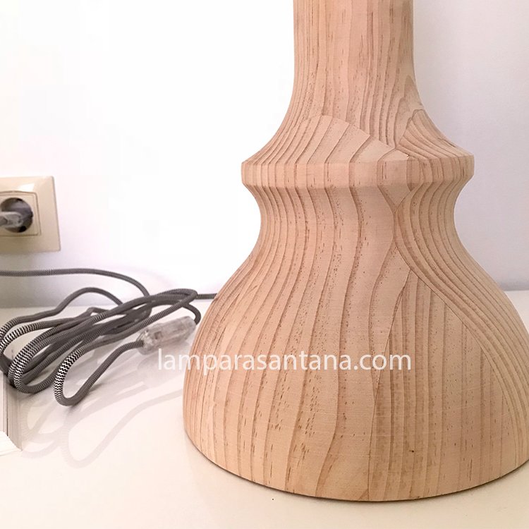 Lámpara fabricada en pino macizo español. Características: portalámparas con arandela para colocar pantalla e27 4A 230V Cable textil 2×0,76 mm 1,5 metros blanco /negro con clavija y interruptor trasparente Bombilla y pantalla no incluida en el precio Medidas: base 24cm; alto 50cm Lampara fabricada de forma artesanal con un toque industrial Ideal para cualquier mesa o suelo de la casa u oficina si gran tamaño hace que se pueda colocar en suelo o mesa con bombillas vista o con pantalla. Se envía sin pintar ni barnizar en su estado natural. Se puede pintar con cualquier barniz o pintura al agua…