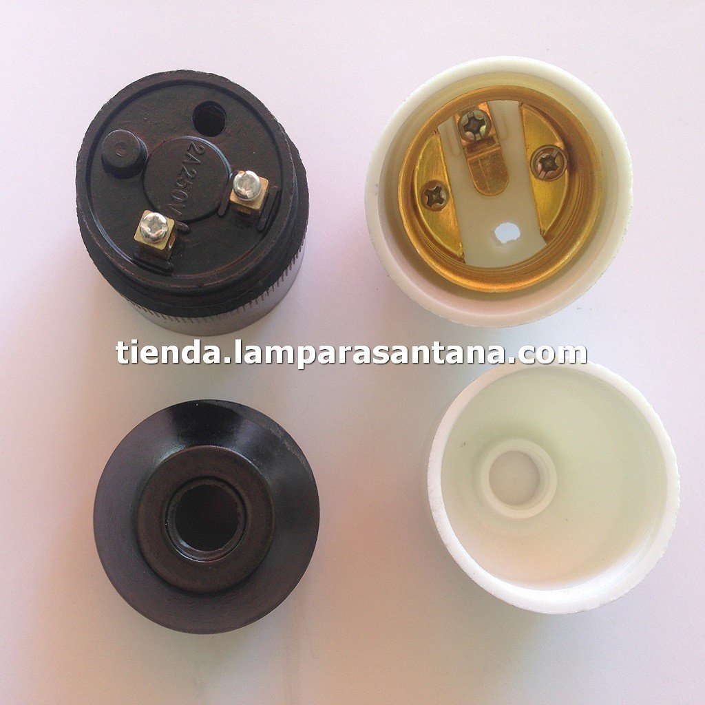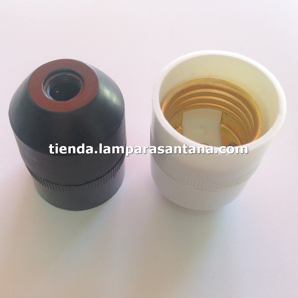 Portalámparas baquelita E27 reforzado, disponible en blanco y negro. Interior reforzado en latón y atornillado
