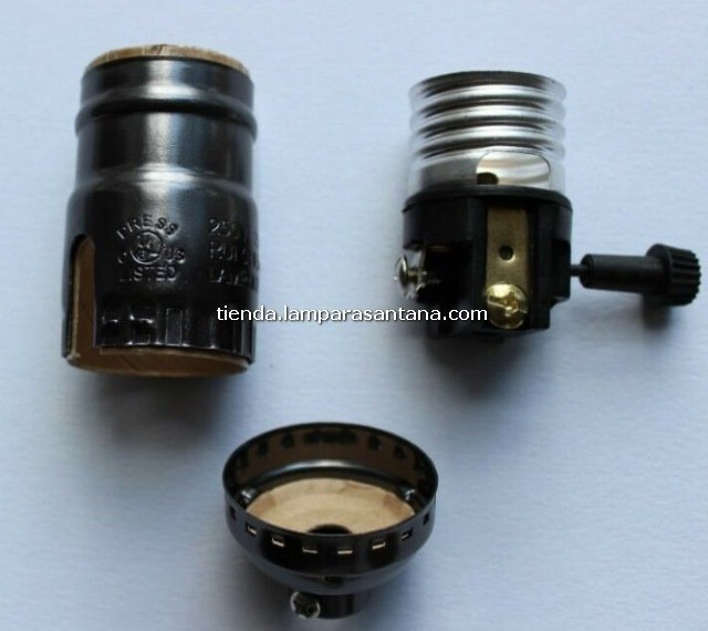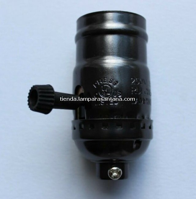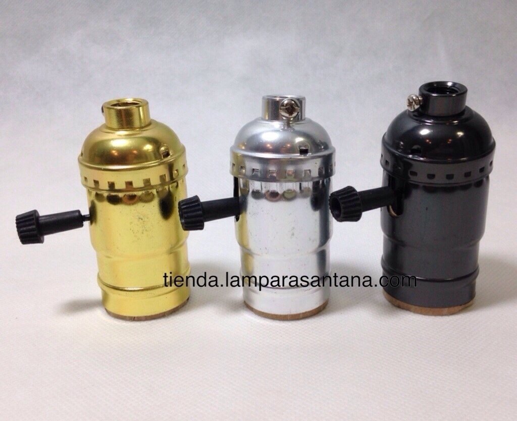 Portalámpara Negro de latón,con interruptor de llave giratoria en PVC E27 4A 250V Colores: dorado, negro, plata