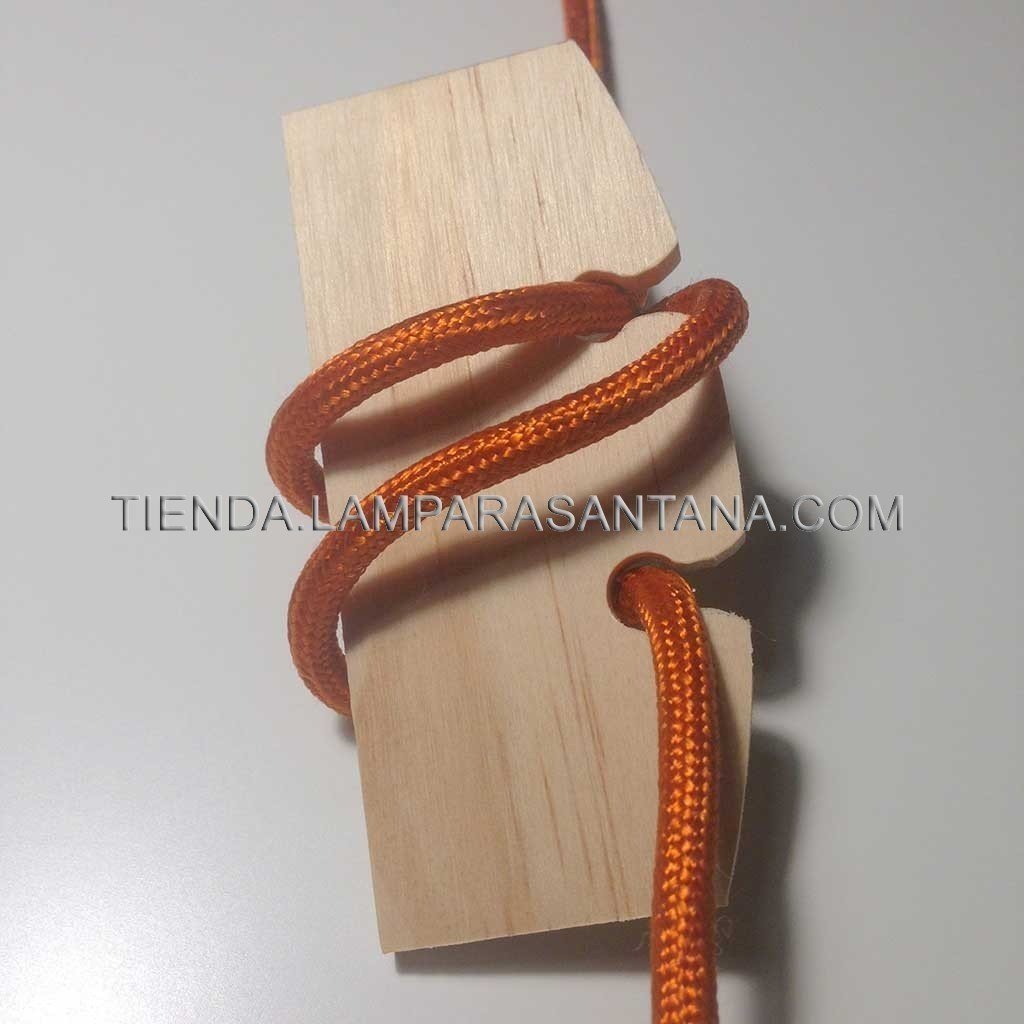 Regulador de altura para lámpara en madera.Pinza especial para recoger cables textiles dándole un toque diferente a tus lámparas