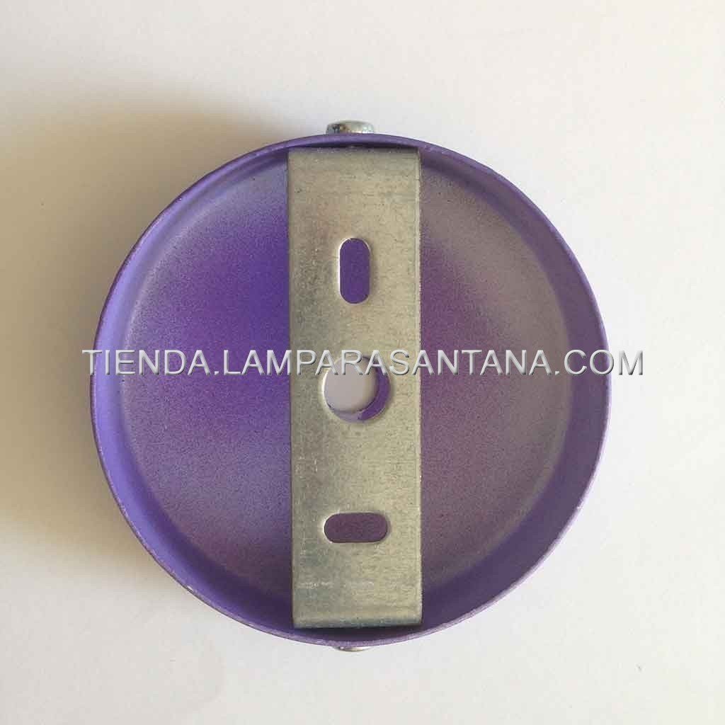 Embellecedor morado techo, sujeción de lámpara suspendida. Soporte techo hierro para lámpara en suspensión. Combina concable de tela